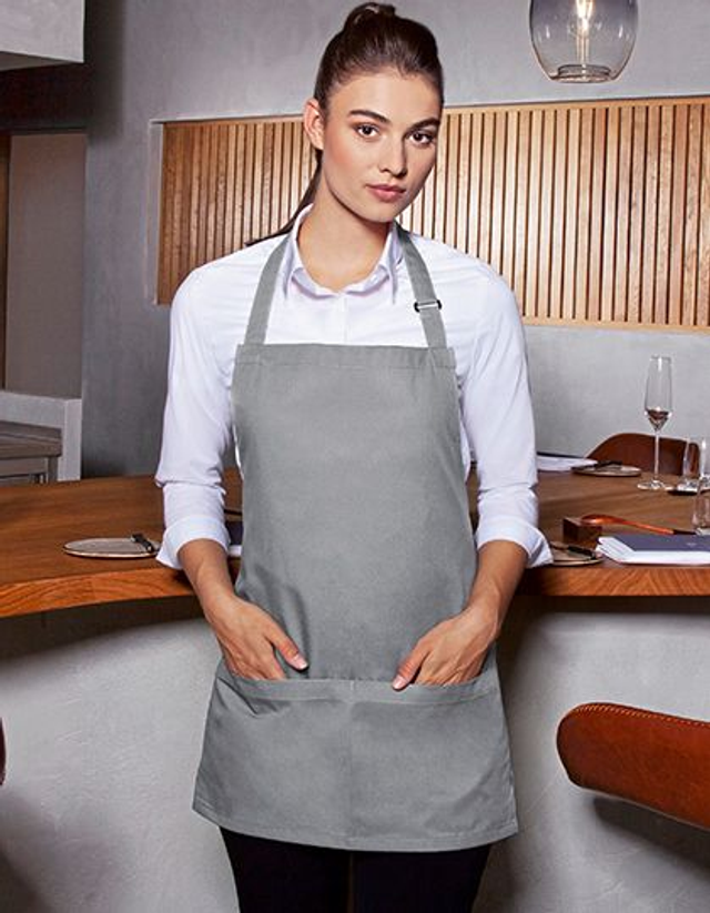 Kurze Latzschürze mit Tasche und Schnalle